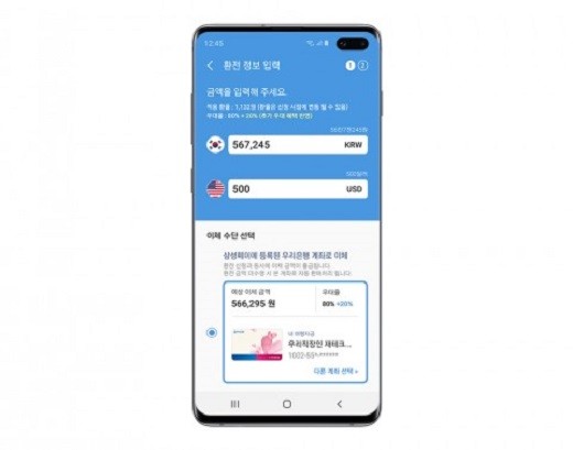 삼성전자는 삼성 페이 ‘환전’ 서비스 출시를 기념해 오는 6월 12일까지 삼성 페이 내 환전 서비스 이용 시 첫 1회에 한해 주요 통화 100% 환율 우대, 우리은행 비대면 계좌와 체크카드 개설 시 무료 여행자 보험 가입 혜택 등을 제공한다.
