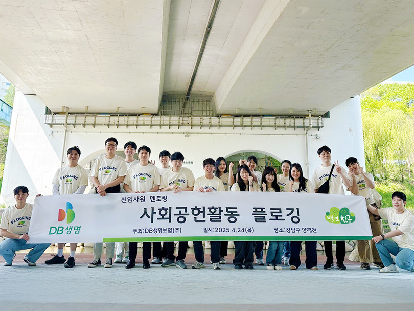 ▲ DB생명, 2025년 신입사원 멘토링 ESG 활동 플로깅 실시. (사진=DB생명 제공) |