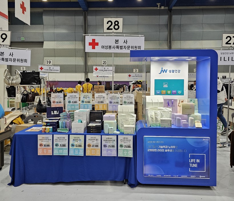 | ▲ JW그룹의 건강생활용품 전문회사 JW생활건강은 지난 31일 대한적십자사 주최로 열린 '2023 적십자 바자행사'에 참여했다. 행사장에 마련된 JW생활건강 부스 모습.(사진=JW그룹 제공) |