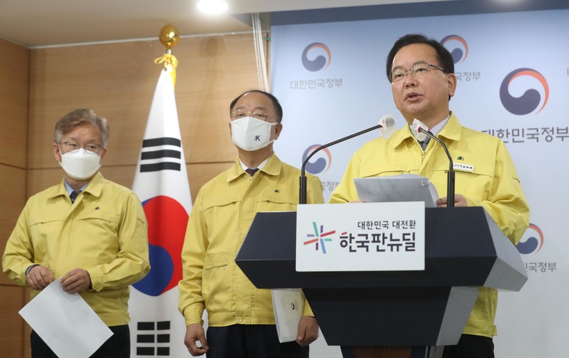김 총리는 "어제 정부는 무거운 마음으로 일상회복을 잠시 멈추자고 말씀드린 바 있다"며 "그러나 정부는 이 결정을 내림에 있어서 무엇보다도 소상공인과 자영업자가 겪게 될 고통을 생각하지 않을 수 없었다"고 했다.