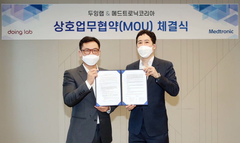 스타트업 기업 두잉랩이 당뇨병 환자를 위한 연속혈당측정기 및 인슐린 펌프 등의 국내 유통과 판매를 담당하는 메드트로닉코리아와 당뇨병 환자의 식습관 관리를 돕는 AI 기반 식단 코칭 서비스 개발을 위한 상호업무협약(MOU)을 지난 8일 체결했다고 12일 밝혔다.