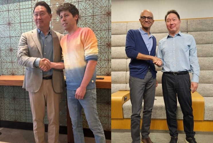 ▲ 스]미국 출장 중인 최태원 SK그룹 회장이 샘 올트먼 오픈AI 최고경영자(CEO)와 사티아 나델라 마이크로소프트(MS) CEO와 함께 한 근황을 공개했다. (사진 = 최태원 회장 SNS 제공) |