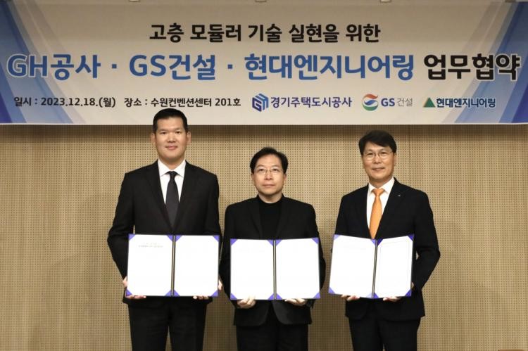 [일요주간 = 최종문 기자] GS건설이 지난 18일 수원 컨벤션센터에서 개최된 협약식을 통해 현대엔지니어링, GH와 함께 '고층 모듈러 기술 실현을 위한 업무협약'을 체결했다고 19일 밝혔다.