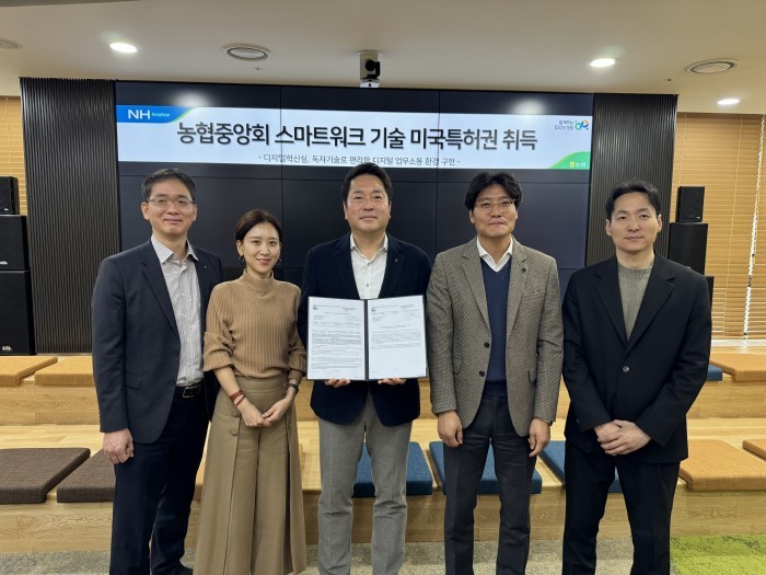[일요주간 = 김완재 기자] 농협중앙회(회장 이성희)가 독자기술로 개발한 농협 '스마트워크 기술'이 지난 6일 미국특허청(USPTO)에서 특허권을 취득했다고 14일 밝혔다.