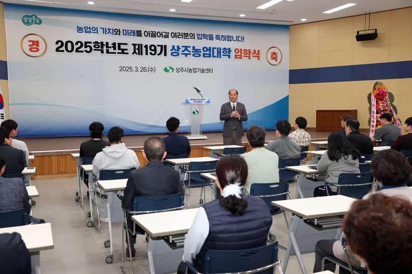 [일요주간=최부건 기자] 상주시농업기술센터(소장 김정수)는 3월 26일에 2025학년도 제19기 상주농업대학 ‘양액재배과’ 입학생 40명과 축하와 격려를 위한 내빈 및 관계관이 참석한 가운데 농업기술센터 대강당에서 입학식을 개최했다.
