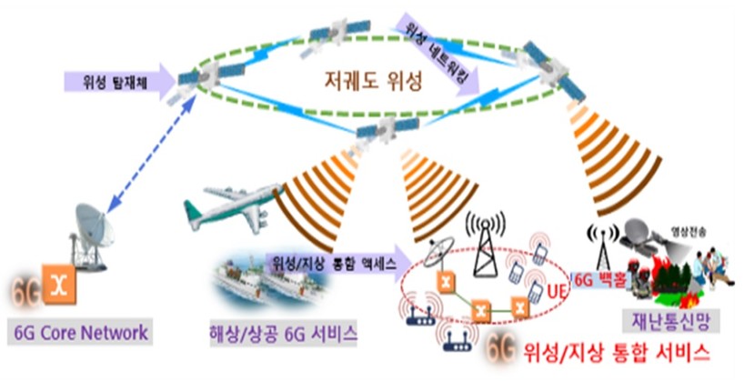 특히 6G 시대에는 이동 중인 비행체(플라잉카·드론 등)와 해상·재난지역 등에서도 Gbps급 통신 이용이 가능하도록 위성망·지상망의 통합을 추진한다. 이를 위해 위성·지상 간 통합 접속기술을 개발하고, 2031년까지 총 14기의 검증용·실증용 저궤도 위성을 발사하는 위성통신기술 발전전략의 이행도 병행해 추진한다.