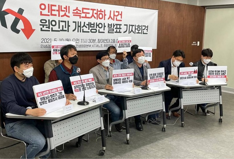 오주헌 KT 새노조 위원장은 “유튜버 잇섭이 제기한 KT 인터넷 속도 논란이 이슈가 되면서 국민이 인터넷 품질을 불신하기 시작했다”면서 “KT 내부에서는 이번에 문제된 10기가 인터넷뿐만 아니라 많은 이용자가 사용하는 기가인터넷 서비스 전반에 걸쳐 더 문제가 많다는 우려가 나오고 있다”고 말했다.