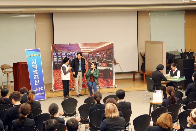 [일요주간=김영란 기자] 강원랜드중독관리센터(이하 센터)는 13일 정선 강원랜드 카지노 본사 미팅룸에서 카지노 종사자들을 대상으로 극단 ‘광부댁’의 도박중독예방 창작 연극을 선보였다.