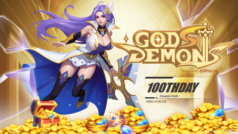 커뮤니티 참여 이벤트도 준비됐다. ‘갓앤데몬’ 공식 게시판에 100일 기념 게시물에 축하 댓글이 100개 이상 달릴 경우 전 세계 유저 전원에게 ‘전설의 자원 선택 상자’가 지급된다. 해당 상자에는 다량의 코인과 경험치 포션이 포함돼 있다. 또한 100일 기념 특별 칭호 및 프레임 획득 쿠폰이 전원에게 제공돼 전투력도 한층 강화할 수 있다.