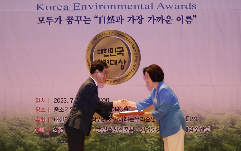 대한민국환경대상위원회가 주최하고 환경부, 산업통상자원부 등 정부 부처가 후원하는 대한민국환경대상은 친환경 경영, 미래개발사업, 자원순환 등 환경경영 우수기업을 대상으로 심의를 거친 후 행정안전부의 승인을 받아 수여되는 상으로 올해 18번째를 맞는다.