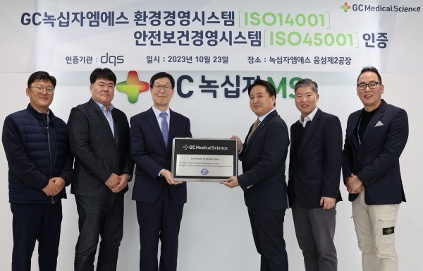 [일요주간 = 하수은 기자] GC녹십자MS는 지난 23일 DQS코리아로부터 ‘ISO14001’(환경 관리 시스템) 및 ‘ISO45001’(안전 및 건강 관리 시스템) 인증을 획득했다고 밝혔다.