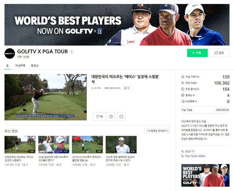8일 엔골프는 디스커버리 및 PGA투어와 계약을 통해 네이버TV에 'GOLFTV X PGA TOUR' 공식 채널을 열고, 한국어 자막이 추가된 콘텐츠를 공급받는다고 밝혔다.