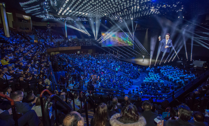 ▲미국 샌프란시스코 빌 그레이엄 시빅 센터에서 현지시간 20일 진행된 '삼성 갤럭시 언팩 2019' 현장 모습.(사진=삼성전자 제공) |