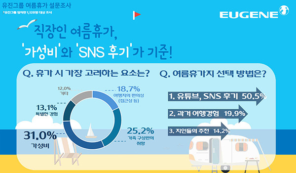 유진그룹 관계자는 “임직원들이 휴가를 계획할 때 현실적이고 합리적인 기준을 중시하는 경향이 나타났다”며 “앞으로도 임직원들이 충분한 휴식과 재충전을 할 수 있도록 다양한 지원을 아끼지 않을 것”이라고 전했다.