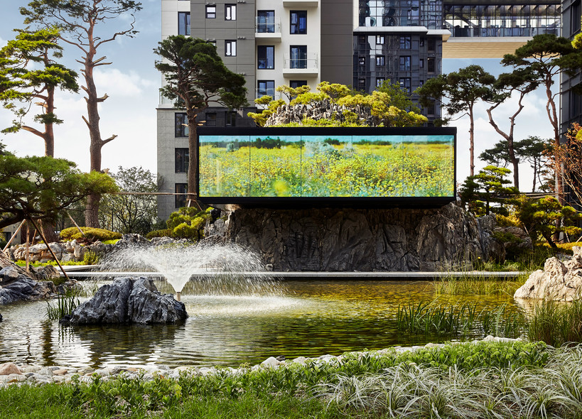 ▲ 가든베일리, 연못과 초대형 미디어 큐브.(사진=삼성물산 제공) |