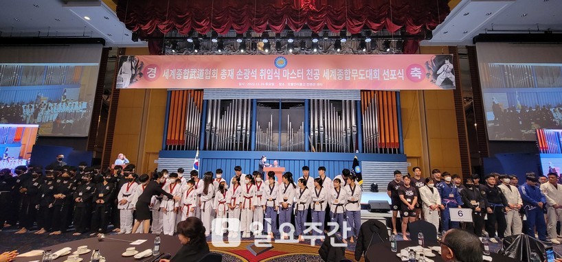 [일요주간 = 김성환 기자] 세계종합무도협회는 지난 26일 대구 북구 산격동 호텔인터불고 켄벤션센터에서 손광석 총재 취임식 및 마스터 천공컵 세계종합무도대회 선포식이 개최됐다.
