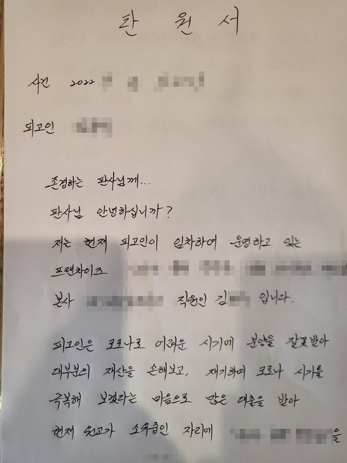 ▲제보자 A 씨는 올해 10월 계약만기를 앞두고 임대인 측에 계약연장을 요청했지만 임대인은 지난해 임대료 3개월치가 밀렸던 부분을 문제삼아 재계약을 거부했다. 이에 A 씨는 임대인의 계약 연장 거부가 부당하다며 법원에 화해 신청을 했지만 임대인은 협상을 거부한 상태다. A 씨 측은 본사 직원들과 단골고객들로부터 받은 탄원서를 화해 신청 재판부에 제출했다.(사진=제보자 제공) |