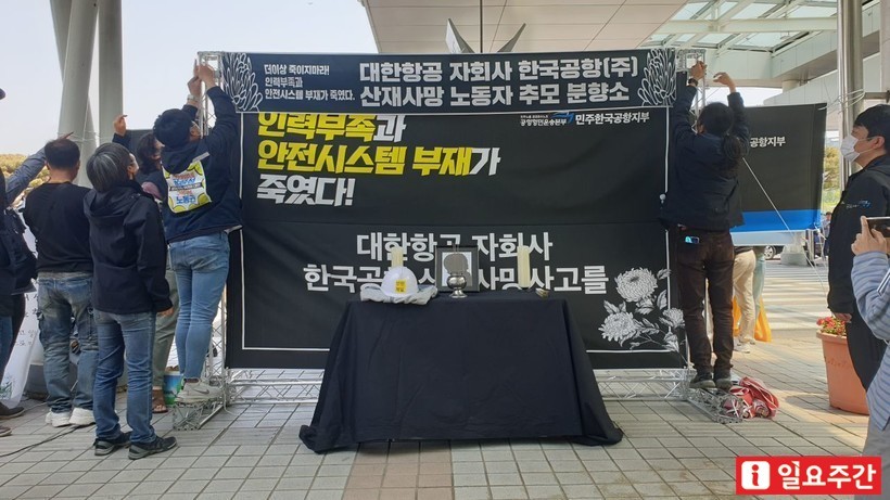 한국공항 노조는 “한국공항에서 끊이지 않고 발생하는 산재사망사고는 단순히 누군가의 부주의 혹은 안전불감증의 문제가 아닌 전형적인 인력부족과 안전시스템의 부재에서 발생한 전형적인 중대재해임이 명백하다”고 주장했다.