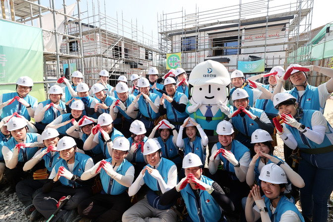 ▲ 대우건설은 총 135명의 자원봉사자들이 저소득 무주택 청년과 신혼 부부 세대를 위해 직접 집을 짓는 봉사활동을 진행했다. (사진=대우건설 제공) |