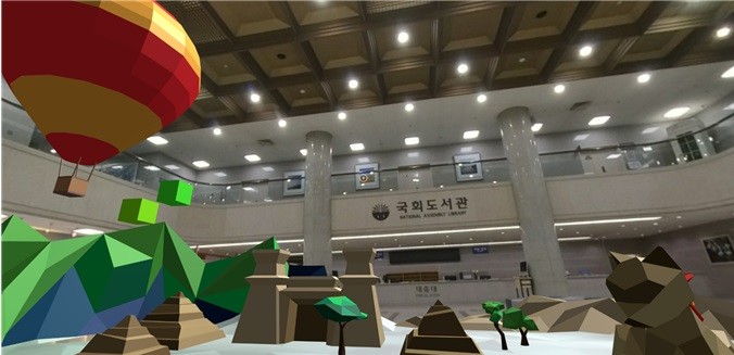 헬로앱스는 사용자들이 국회도서관을 배경으로 드론, 과학 및 VR 게임 등을 체험할 수 있도록 했으며 컨베이어벨트를 통해 사용자가 대여 요청한 책이 전달되는 과정을 360 VR 영상으로 즐길 수 있도록 했다.