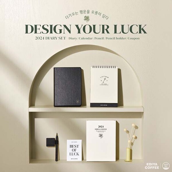 다가오는 새해 행운을 가득 담는다는 “BEST OF LUCK”을 콘셉트로 한 ‘2024 이디야 다이어리 세트’는 블랙&화이트톤의 컬러를 활용한 다이어리와 캘린더, 만년연필, 연필/펜 홀더, NEW 아메리카노 할인 쿠폰 등 실용성 높은 5종으로 구성됐다.