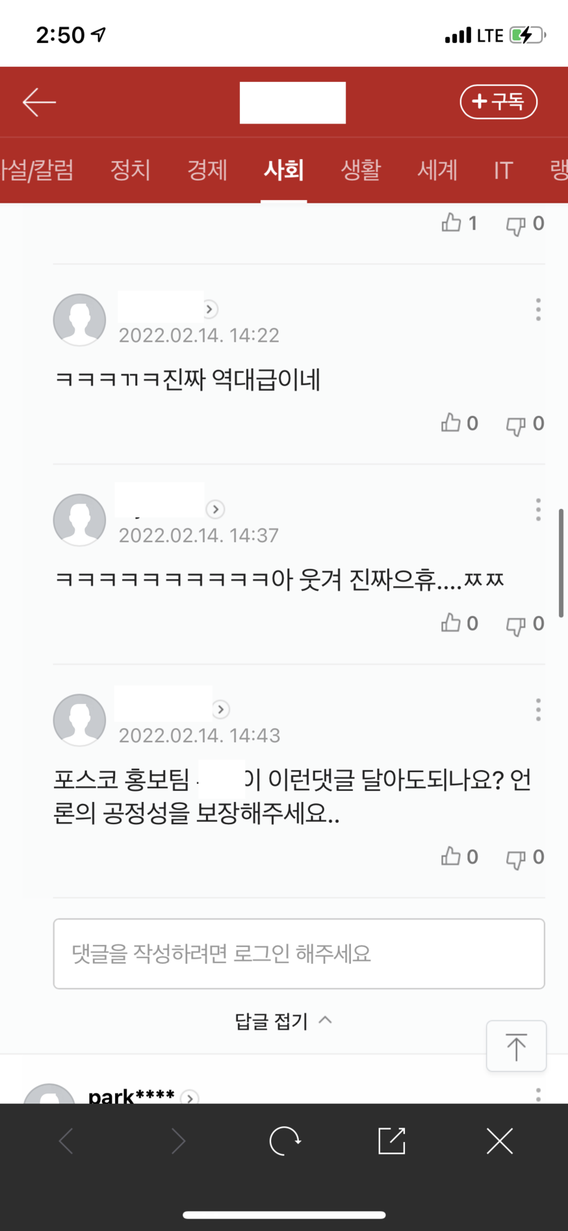 그러면서 "지주사 서울 설치를 반대하는 포항시장 및 대선주자들 관련 기사에 달린 댓글들도 모두 지워지고 없다”고 덧붙였다.