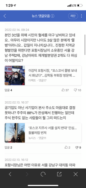 다음 날인 14일에는 D 언론사에서 보도한 ‘이강덕 포항시장, 포스코서 쫄병 보내서 화났다’ 기사에 댓글을 달아 "본인 3선을 위해 시민의 혈세를 마구 낭비하고 있네요. 아무리 시장이지만 나이도 3살 많은 분에게 ‘쫄병’이라니요"라며 이강덕 시장의 갑질을 비난했다.