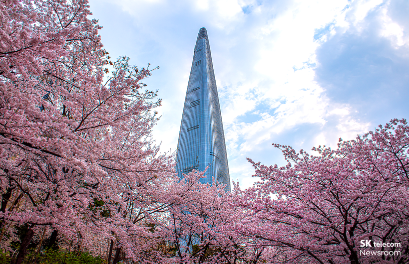 ▲벗꽃 명소로 유명한 석촌호수.(사진=SK텔레콤 제공)