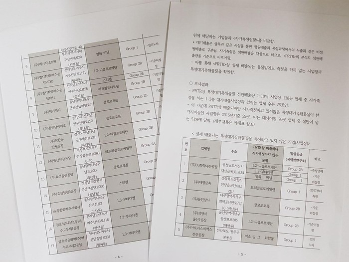 이어 “특정대기유해물질을 배출하는 사업장에 대한 정부의 관리감독 문제가 매우 심각한 것으로 확인됐다”며 “정부는 기업을 대상으로 전반적인 재조사와 위반업체에 대한 법적조치를 조속히 취해야 한다”고 지적했다.
