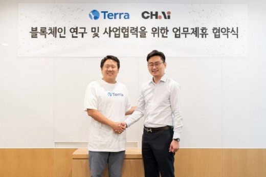 [일요주간=노가연 기자] 글로벌 블록체인 핀테크 기업 테라가 간편결제 앱 ‘차이(CHAI)’를 제공하는 국내 핀테크 기업 차이 코퍼레이션과 블록체인 기술 활용 및 사업을 위한 전략적 파트너십을 체결했다고 12일 밝혔다.