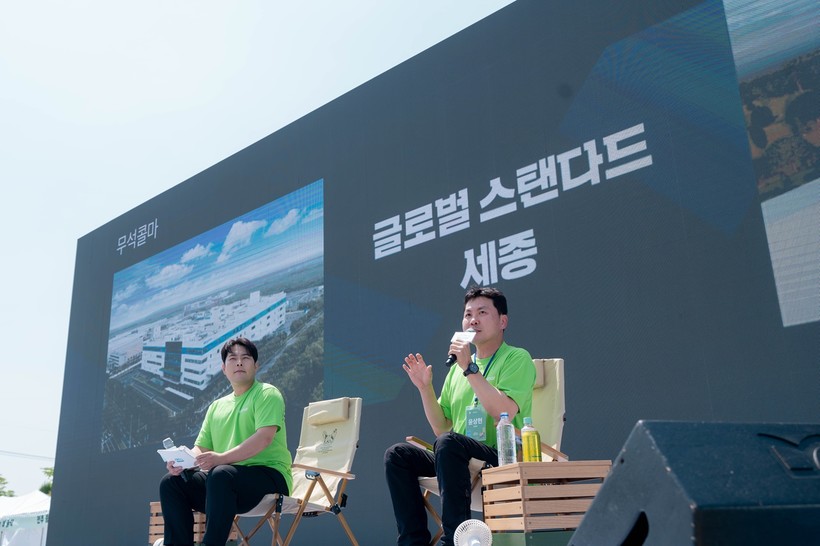 이날 초록색 티셔츠에 청바지를 입고 행사무대에 오른 윤상현 부회장은 "세종공장에서 만드는 제품과 품질이 곧 글로벌 스탠다드이며 콜마인의 자부심은 여기서 시작된다"고 강조했다.