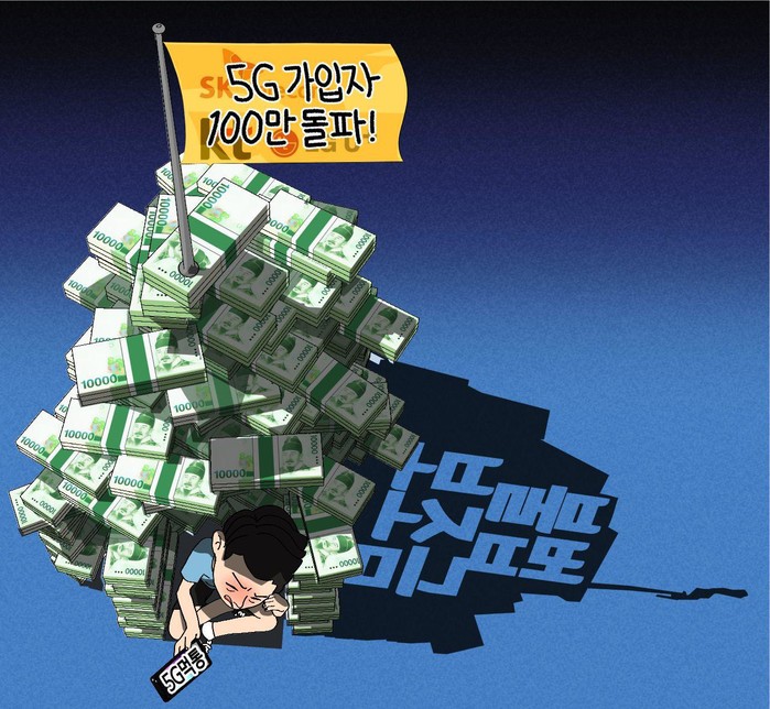 [일요주간 E만평] 5G 가입자 100만의 그늘...만연한 리베이트에 소비자들 '피멍'