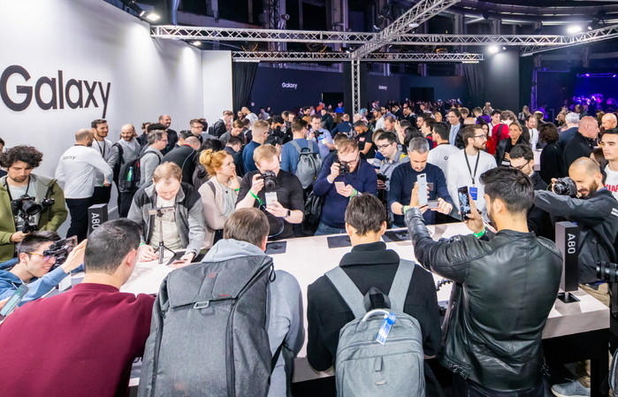 ▲ 4월 10일(현지시간) 이탈리아 밀라노에서 진행된 'A 갤럭시 이벤트' 참석자들이 '갤럭시 A80'와 '갤럭시 A70'를 체험하고 있는 모습./제공=삼성전자. |