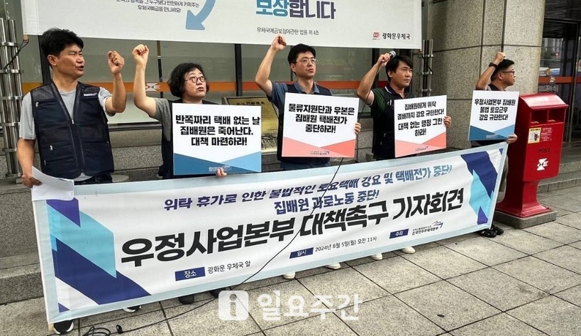 [일요주간=임태경 기자] “우정사업본부 산하 우체국물류지원단은 단체협약에 따라 매년 여름 이틀의 휴가를 위탁 택배원(택배 노동자)에게 보장해야 하는데 이 기간 물량이 고스란히 집배원에게 전가되는 일이 6년째 반복되고 있다.”