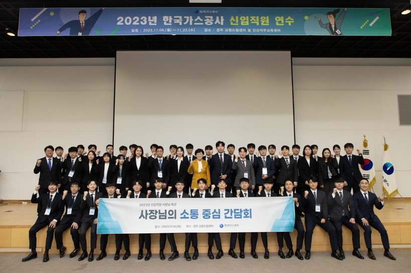 [일요주간=김영란 기자] 한국가스공사(사장 최연혜)는 지난 11월 14일 경주 교원드림센터에서 신입사원 45명을 대상으로 ‘CEO 특강과 소통의 시간’을 가졌다고 15일 밝혔다.