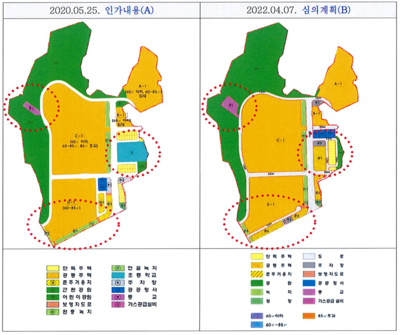 비대위는 시에 제출한 진정서에서 과도한 사업성 증가로 공익성 훼손이 우려된다며 “인천시가 2020년 5월 인가할 당시와 대비해 2022년 4월 7일자 심의대상 계획은 공공시설(완충녹지, 학교용지) 등 비사업용 토지들을 폐지하고 수익성 있는 토지로 대체했다”고 지적했다.