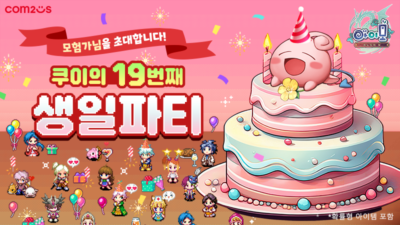 이번 19주년을 기념해 ‘아이모’에서 오는 5월 15일까지 ‘쿠이의 19번째 생일파티’ 이벤트가 진행된다. 우선 몬스터를 사냥하면 얻을 수 있는 ‘쿠이의 마음’을 우디워디 마을 NPC쿠피드에게 전달하면 ‘19주년 쿠이의 마음 코스튬’ 6종과 함께 이벤트 도감에 등록할 수 있는 기념 토큰 등을 받을 수 있다. ‘쿠이의 마음’을 NPC ‘나탈리’에게 전달하면 1시간 동안 경험치 10% 추가 효과도 누릴 수 있다.