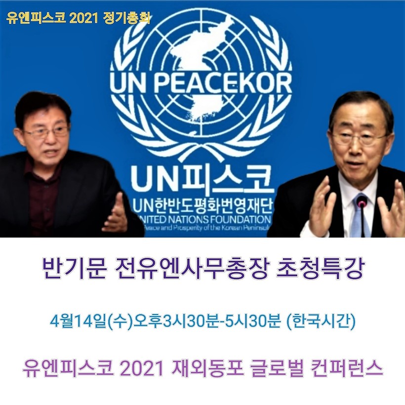▲ UN피스코는 오는 14일(한국시간) 'UN피스코2021 재외동포 글로벌 컨퍼런스'에 반기문 전 UN사무총장을 초청해 비대면 화상 강연회를 개최한다.(사진=UN피스코 제공) |