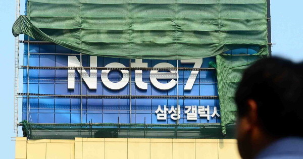 ▲ 갤럭시노트7의 배터리 폭발문제 등의 이유로 리콜 및 교환에 이어 생산 중단까지 결정한 삼성전자의 위기감이 고조되고 있다. 14일 오후 서울 종로구 광화문광장 인근 옥외광고판에 설치된 갤럭시 노트7 광고가 철거되고 있다. @뉴시스