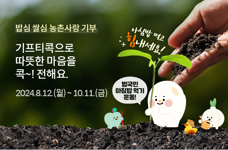 '밥심 쌀심 농촌사랑 기부' 이벤트는 1200만 고객이 NH콕뱅크에서 쌓은 비현금성 활동점수인 기프티콕을 사회공헌 콘텐츠에 사용하면 농협이 고객을 대신해 기부하는 서비스로 고객이 사용한 기프티콕 점수를 기반으로 구간별 조건에 따라 농협에서 농촌에 거주 중인 취약계층에게 쌀 가공품을 기부하는 행사이다.