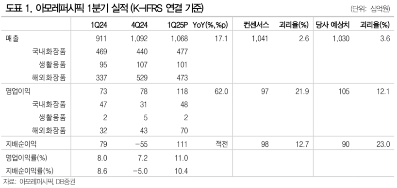 [일요주간 = 노현주 기자] 아모레퍼시픽이 올해 1분기 실적에서 기대를 뛰어넘는 성과를 기록하며 화장품 업계의 주목을 받고 있다. 연결 기준 매출은 전년 동기 대비 17.1% 증가한 1조 675억 원, 영업이익은 무려 62% 급증한 1177억 원으로 시장 컨센서스를 상회했다.