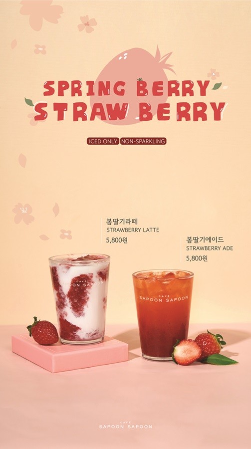 특히 ‘봄딸기 라떼’, ‘봄딸기 에이드’는 끓이지 않고 만든 수제 딸기청을 사용해 생딸기 원물의 맛을 극대화 한 것이 특징이다.