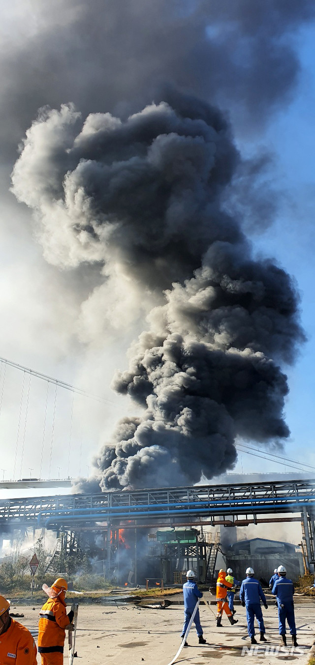 | ▲ 2019년 12월 24일 전남 광양시 금호동 포스코 광양제철소 내 포스하이메탈 공장 유류탱크에 연결된 배관에서 폭발음과 화염이 발생했다. 이 사고로 5명이 크고 작은 부상을 입은 것으로 알려졌다. 사고 직후 수습 모습.(사진 = newsis) |