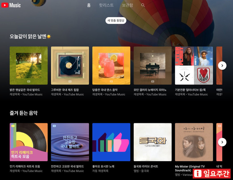 ▲ 유튜브 뮤직 PC 화면 캡쳐 (이미지편집=일요주간) |