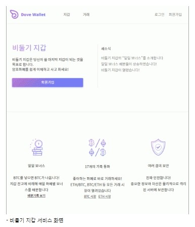 차일들리는 “비둘기 지갑은 원화 등의 법정화폐가 아닌 암호화폐만의 전문 서비스를 제공한다”며 “여타 국내외 거래소들과 달리 암호화폐에 특화된 지원과 결제 등으로 차별화를 했다”고 전했다.