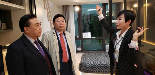 ▲ 구매자들이 오피스텔 모델하우스에서 안내자의 설명을 진지하게 듣고 있다. |