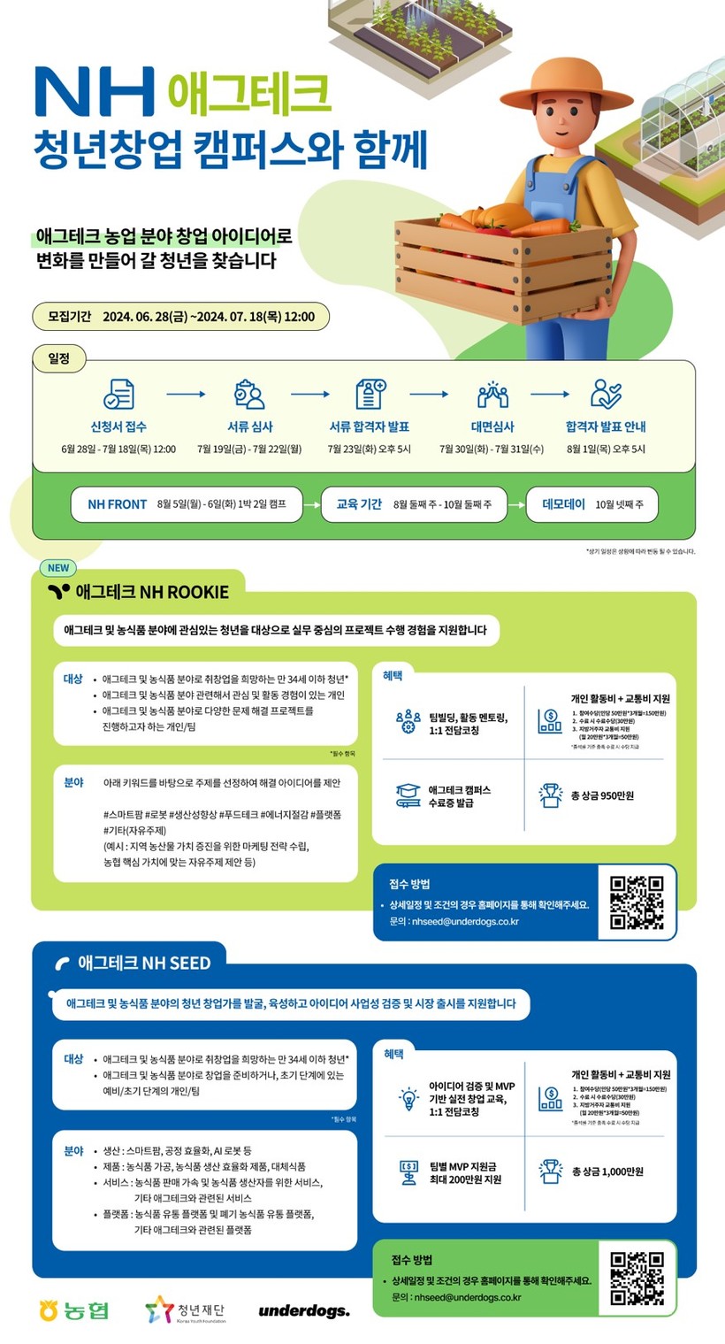| ▲ '애그테크 청년 창업캠퍼스' 프로그램 참가자 모집. (사진=농협 제공) |