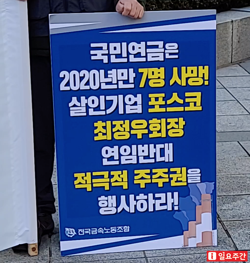 ▲ 지난 1월 27일 오전 서울 강남구 테헤란로 포스코 본사 앞에서는 노동단체와 시민단체들이 포스코의 대주주(11.43%)인 국민연금이 적극적인 주주권을 행사할 것을 촉구하는 기자회견을 개최했다. |