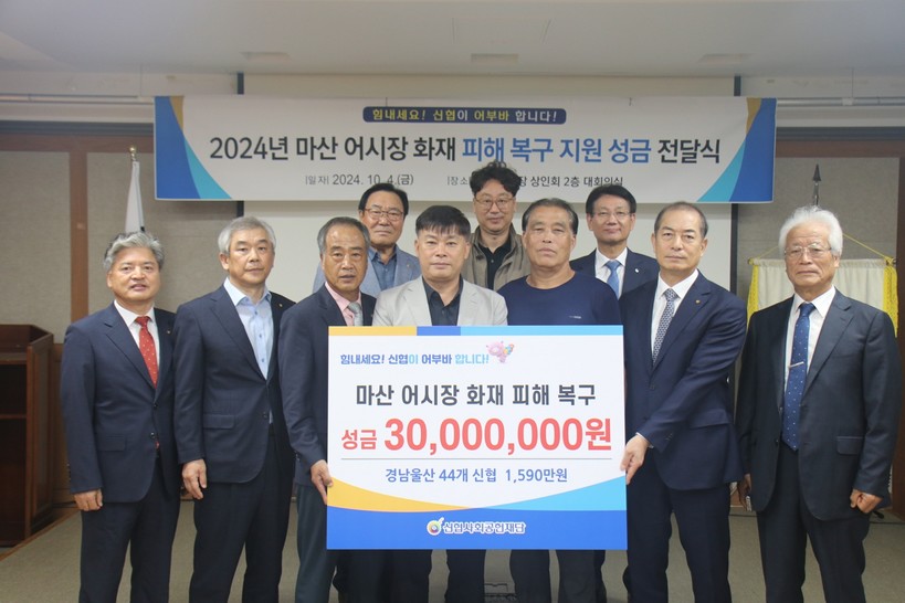 신협사회공헌재단 우욱현 상임이사는 “예기치 못한 화재로 큰 피해를 본 마산 어시장 상인들의 일상이 빠르게 정상화되길 바란다”며 “신협사회공헌재단은 지역사회가 처한 문제에 관심을 가지고 적극적으로 해결하는 데 최선의 노력을 다할 것”이라고 말했다.