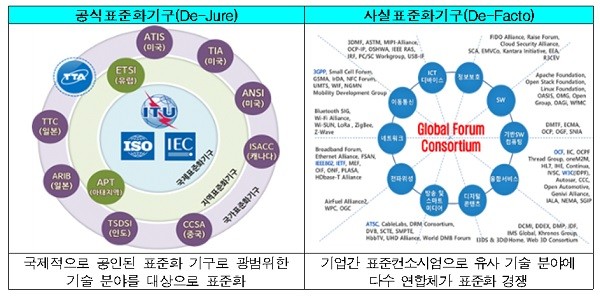 [일요주간 = 하수은 기자] 세계 여러 나라는 글로벌시장 선점을 위해 ITU(국제전기통신연합), ISO(국제 표준화기구)·IEC(국제전기기술위원회) 등 국제공식표준화기구와 3GPP(국제이동통신표준화기구), IEEE(국제전기전자학회) 등 사실표준화기구에서 자국 기술 중심의 표준화를 위해 각축전을 벌이고 있다.
